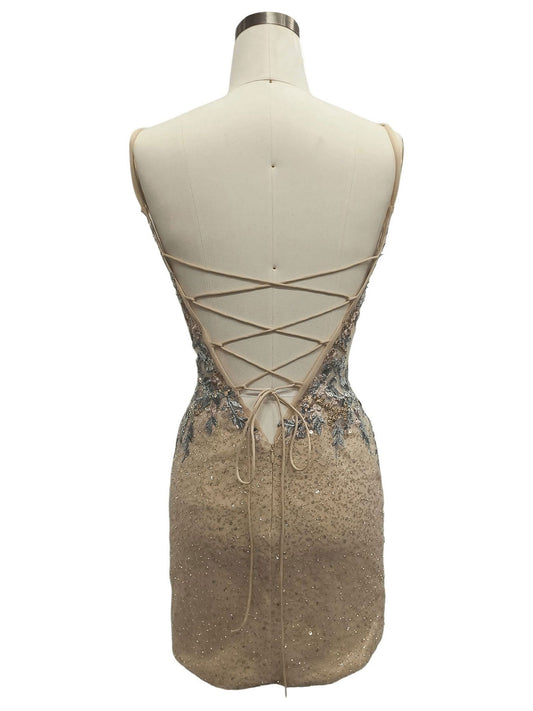 BODY CONTOURING SEQUIN AND EMBROIDERED DRESS