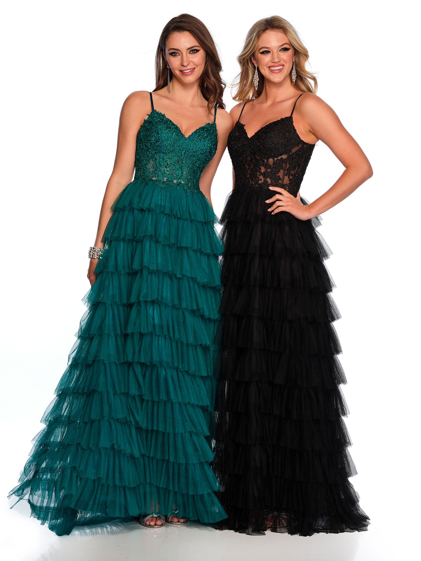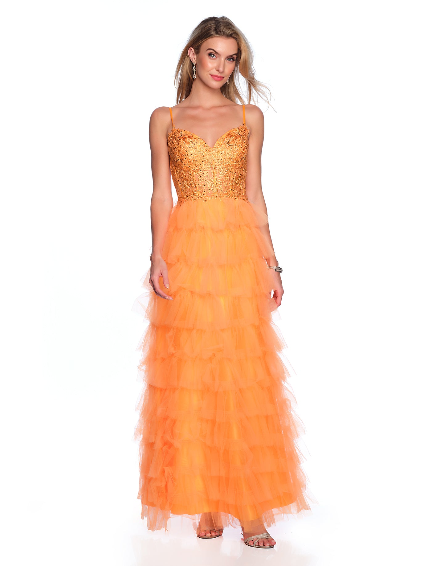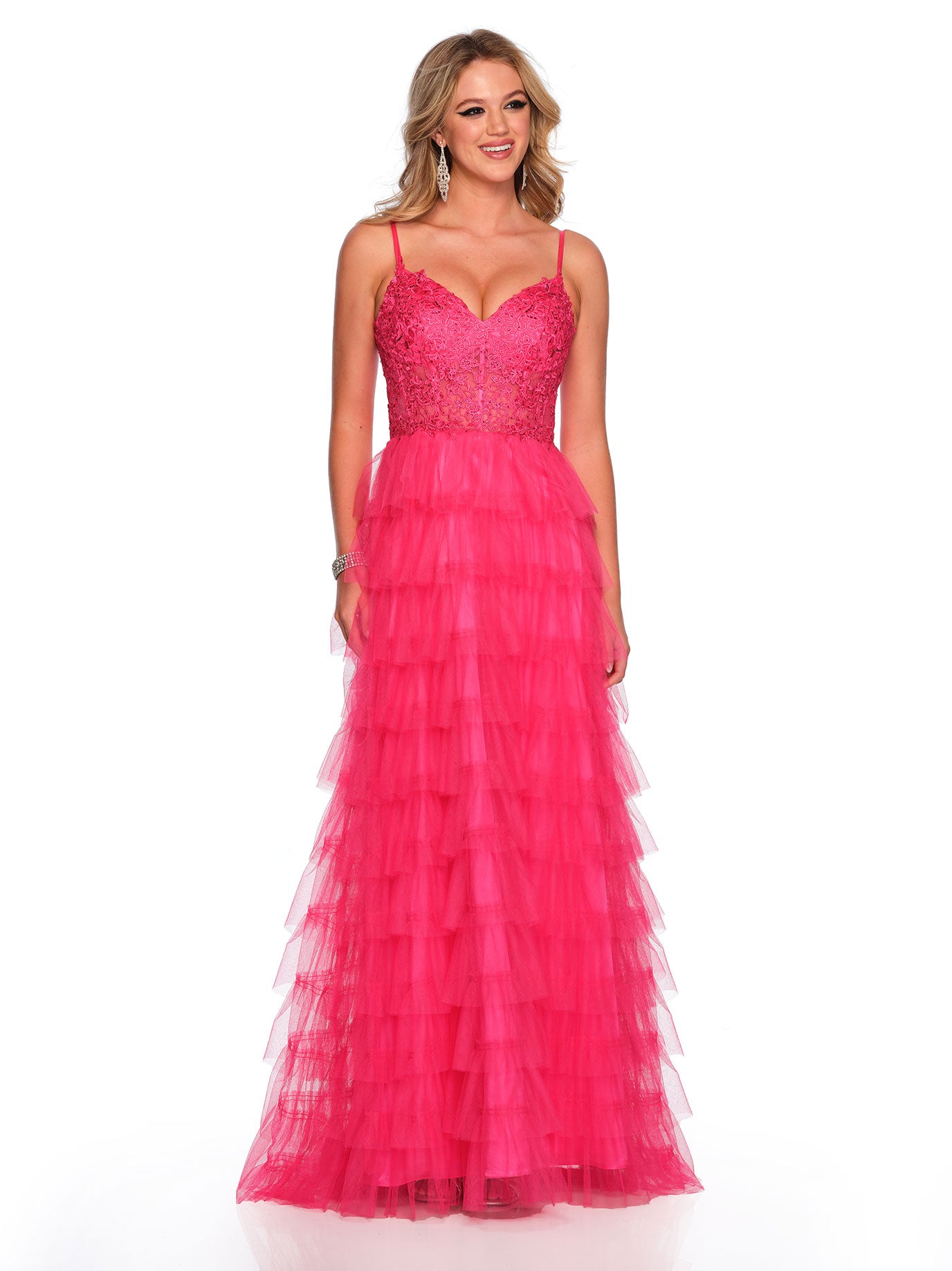 TIERED TULLE GOWN WITH CORSET LACE TOP