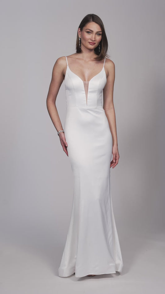 SATIN WEDDING DRESS WITH ILLUSION BACK PANELSRegular price $1.00 USDRegular priceUnit price per-
