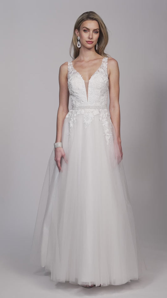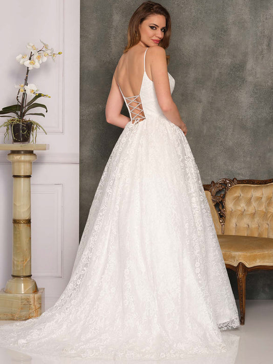 PLUNGE OPEN BACK LACE ACCENT WEDDING GOWNRegular price $1.00 USDRegular priceUnit price per-