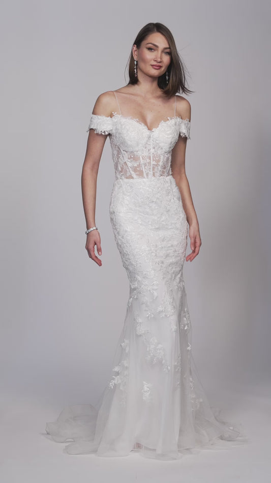 LACE STRUCTURED BODICE OFF-SHOULDER MERMAID WEDDING GOWNRegular price $1.00 USDRegular priceUnit price per-
