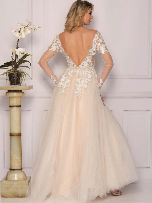 ILLUSION LONG SLEEVE WEDDING DRESS WITH FLORAL APPLIQUESRegular price $1.00 USDRegular priceUnit price per-