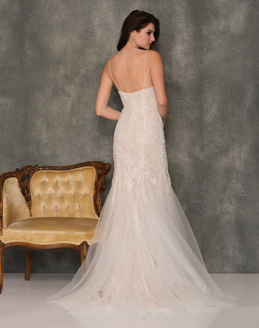 ILLUSION GLITTER TULLE WEDDING DRESS WITH 3D APPLIQUES