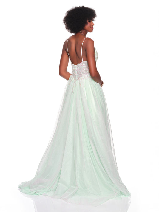 BALLGOWN WITH MULTILAYER COLORED TULLE AN EMBELLISHED TOP