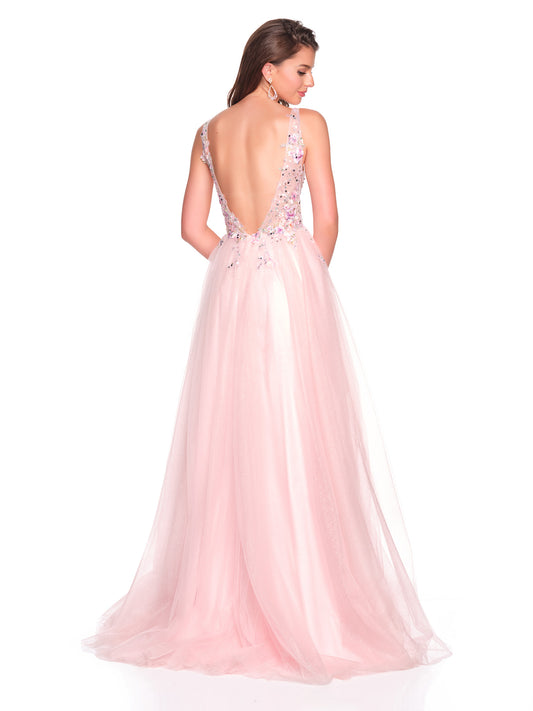 TULLE SHIMMER BALLGOWN WITH FLORAL APPLIQUES