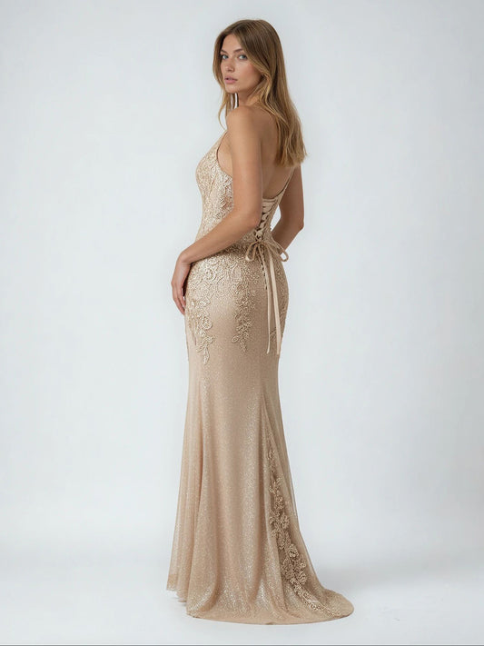 GLITTER AND SEQUIN DRESS WITH ILLUSION BODICE
