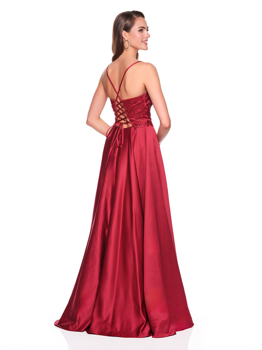 SATIN GOWN WITH SIDE SASH AND RHINESTONE EMBELLISHMENT