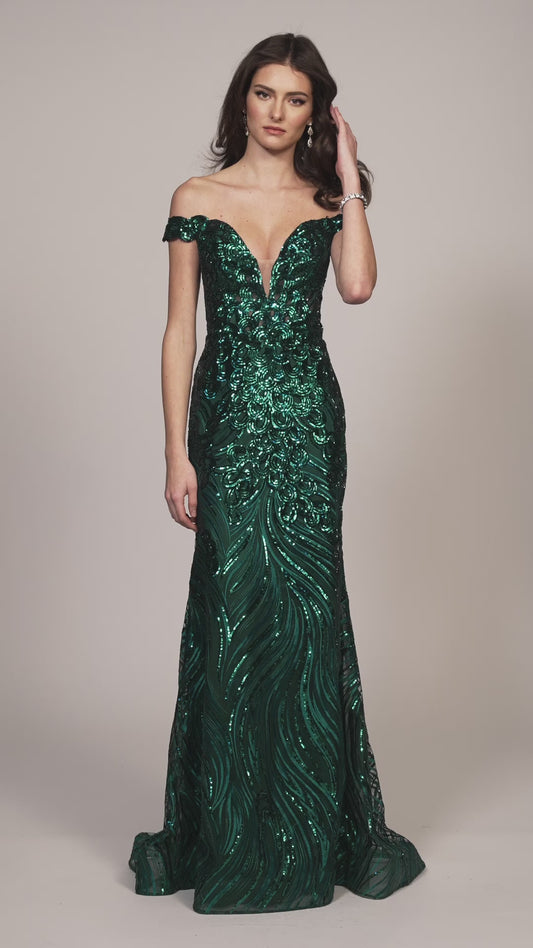 FITTED OFF THE SHOULDER SEQUIN GOWNRegular price $1.00 USDRegular priceUnit price per-