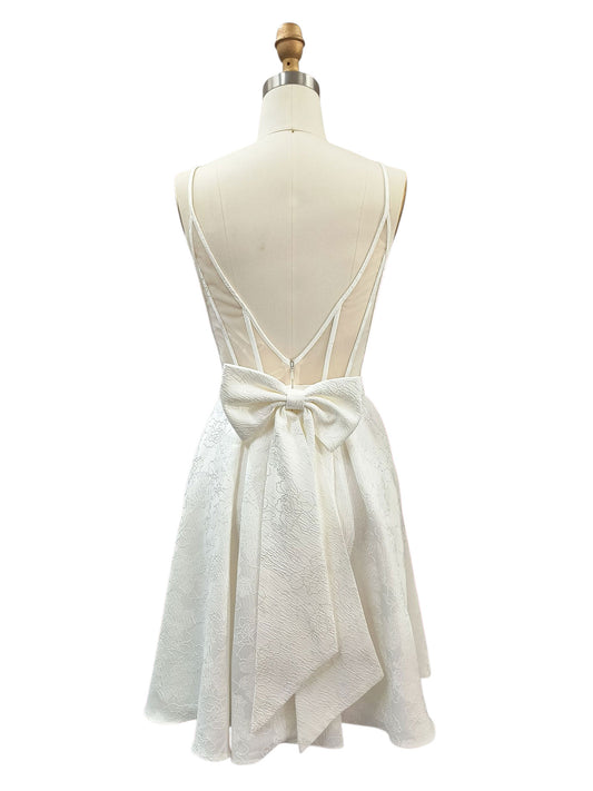 SHORT DEEP V EMBROIDERED BRIDAL DRESS WITH FULL SKIRT