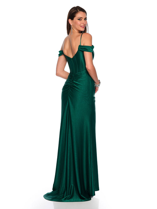 OFF THE SHOULDER FEATHER STRETCH SATIN JERSEY GOWN