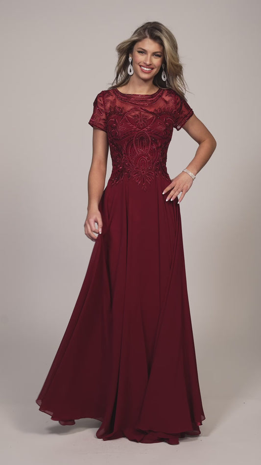 BEADED SHORT SLEEVE CHIFFON DRESS