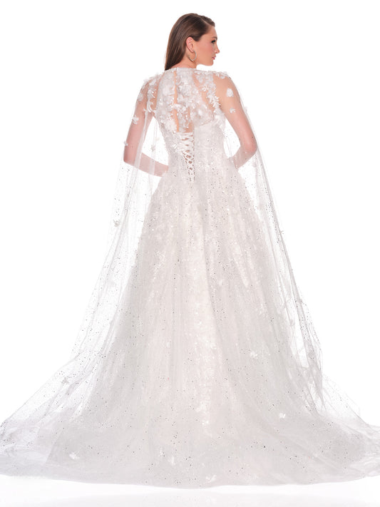 EMBROIDERED FITTED ILLUSION BODICE BRIDAL GOWN