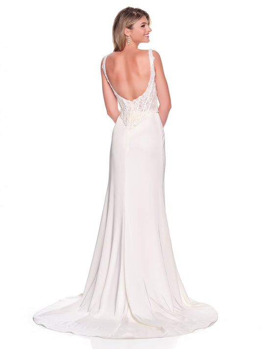 DEEP CUT OUT BACK SATIN BRIDAL DRESS WITH DEEP PLUNGE BODICE