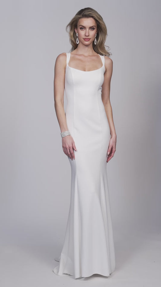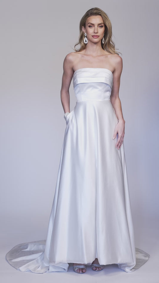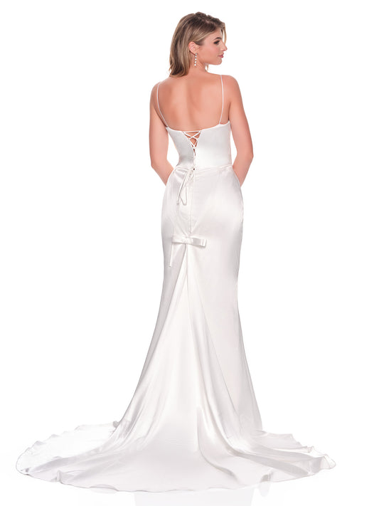 FITTED SATIN WEDDING DRESS WITH BACK BOW DETAIL ON TRAIN