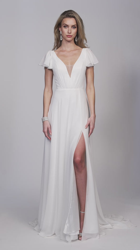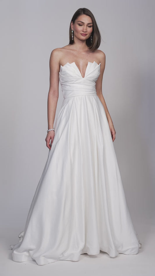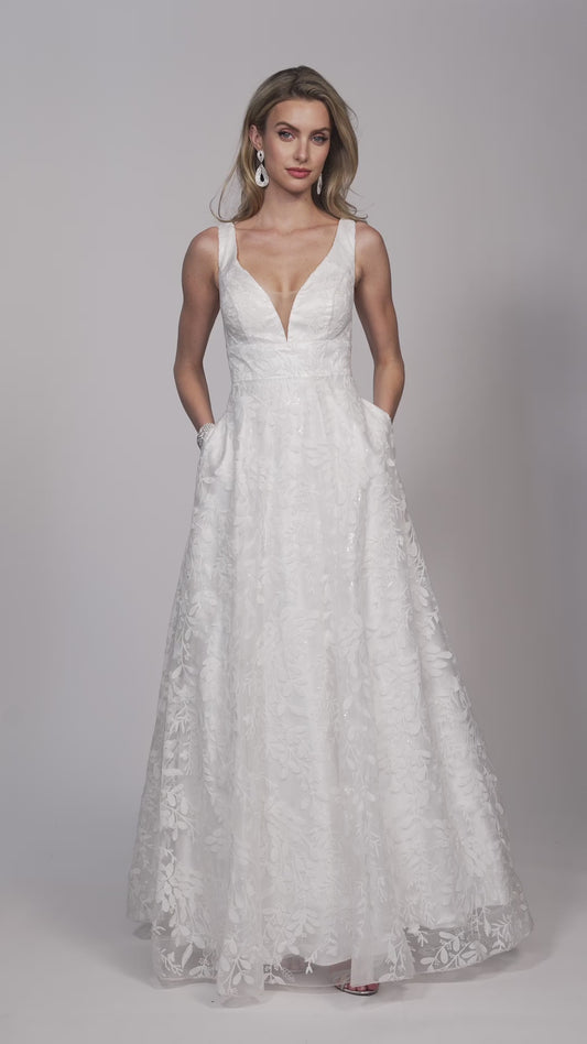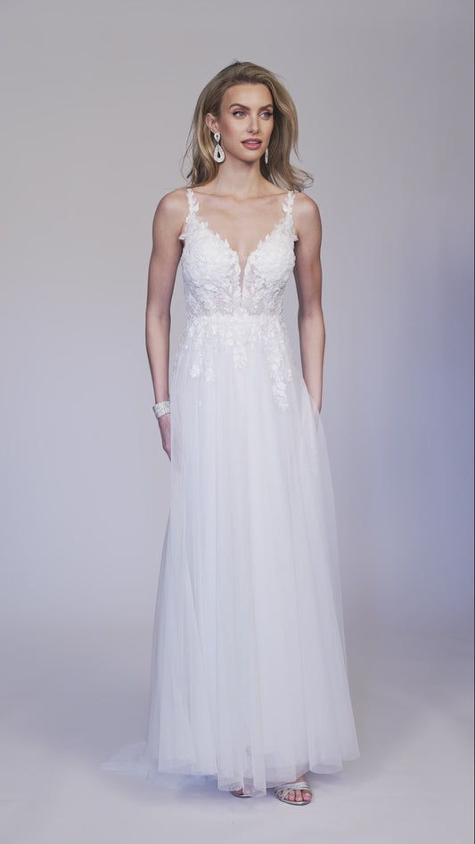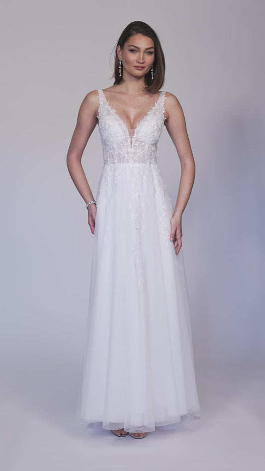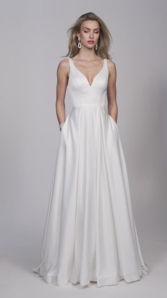 THICK STRAP DEEP V-BACK A-LINE WEDDING GOWN