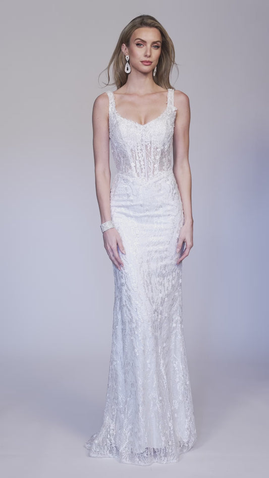 ILLUSION EMBROIDERED CORSET BRIDAL GOWN WITH SQUARE NECKLINE