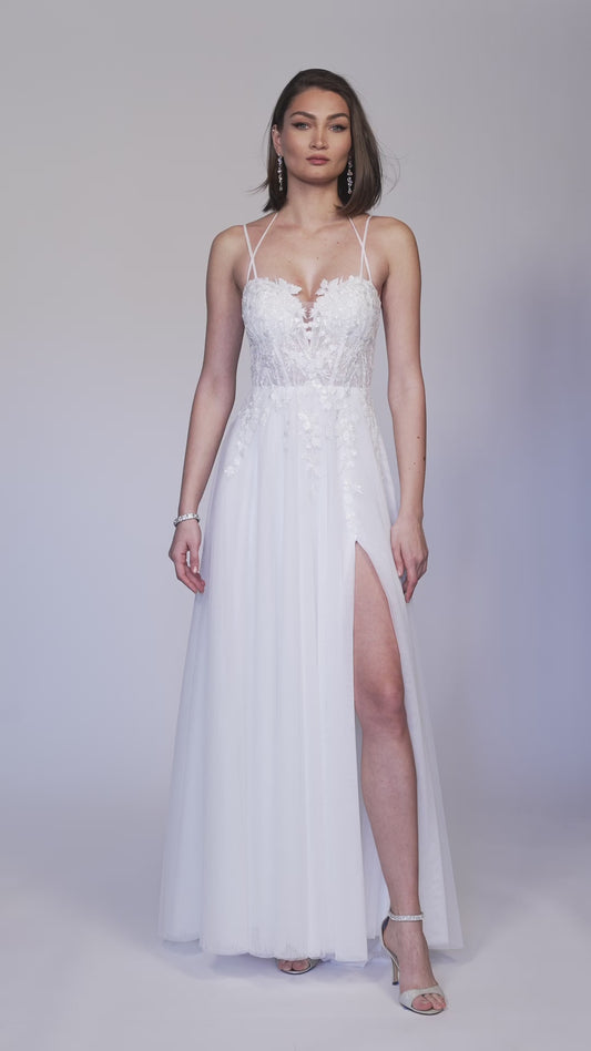 LACE UP BACK BRIDAL GOWN WITH A-LINE SKIRT