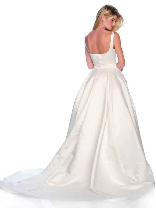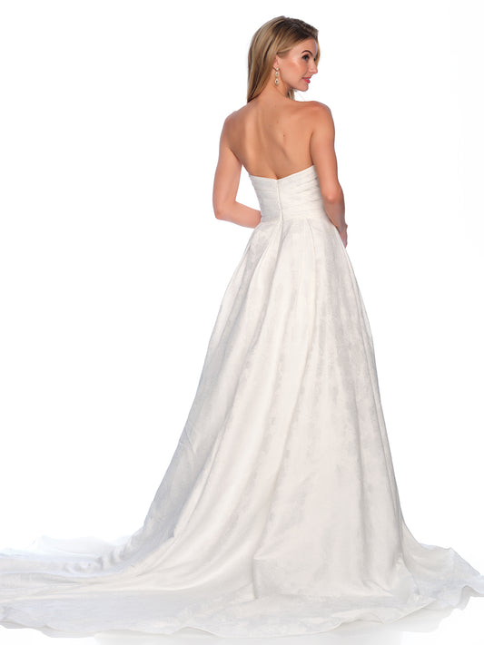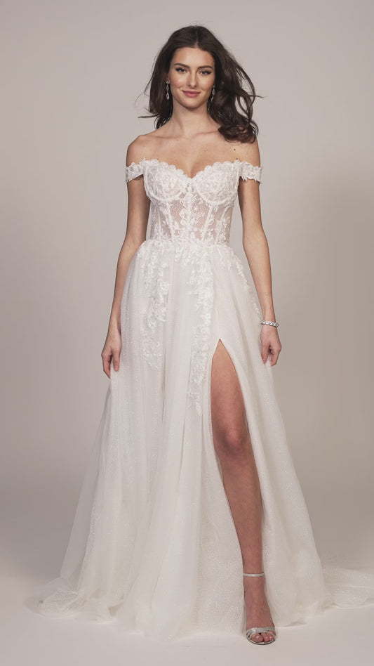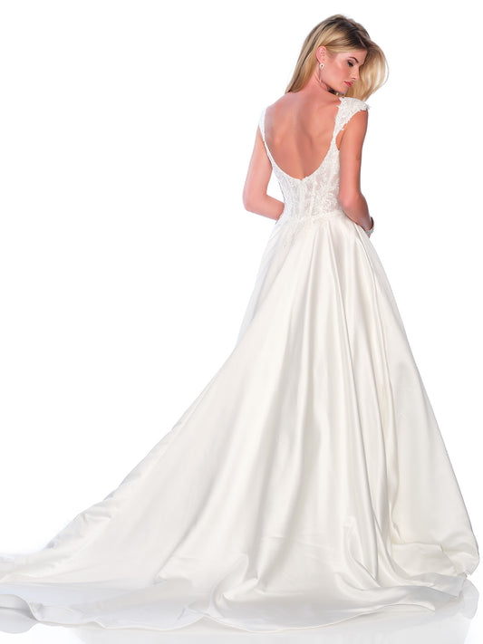 OFF THE SHOULDER ILLUSION BODICE WITH ALINE SKIRT AND TRAIN