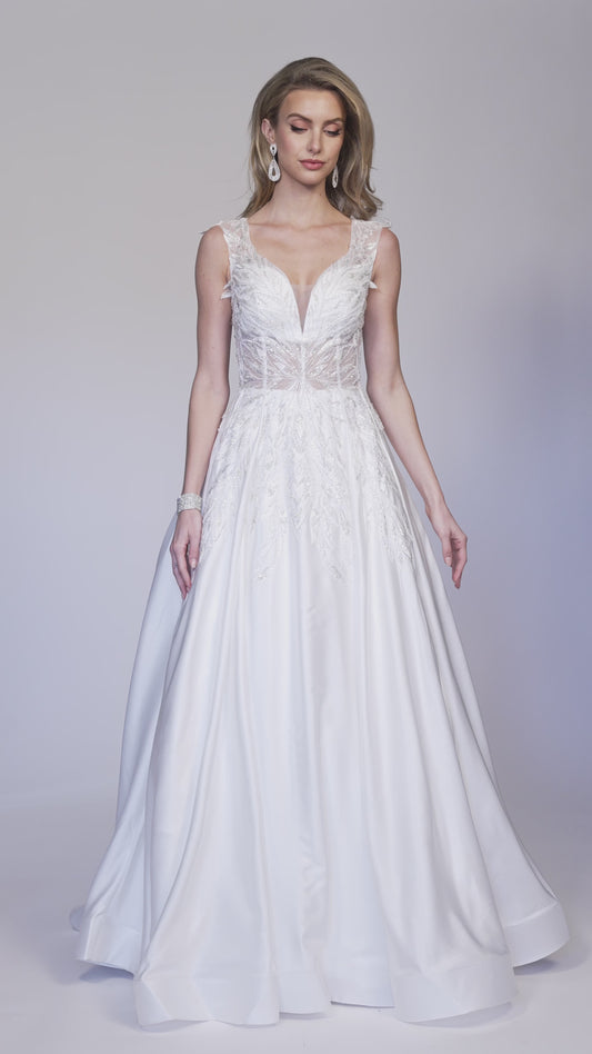 CHIFFON WEDDING GOWN WITH BEADED ILLUSION TOP
