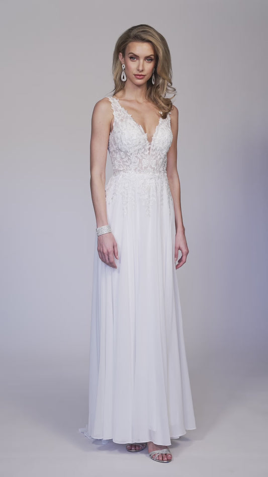 STRAPPY BEADED CHIFFON WEDDING GOWN
