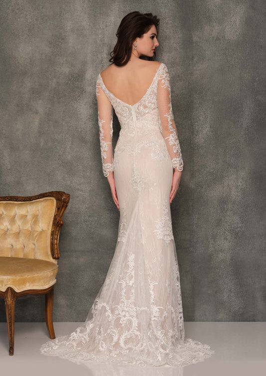 ILLUSION LONG SLEEVE LACE BRIDAL GOWN PLUS SIZE