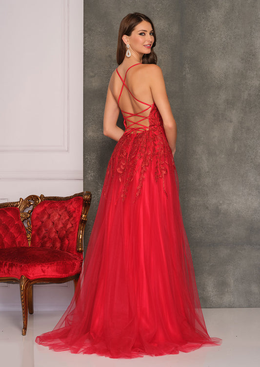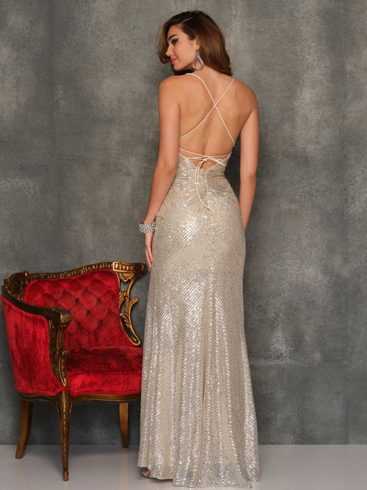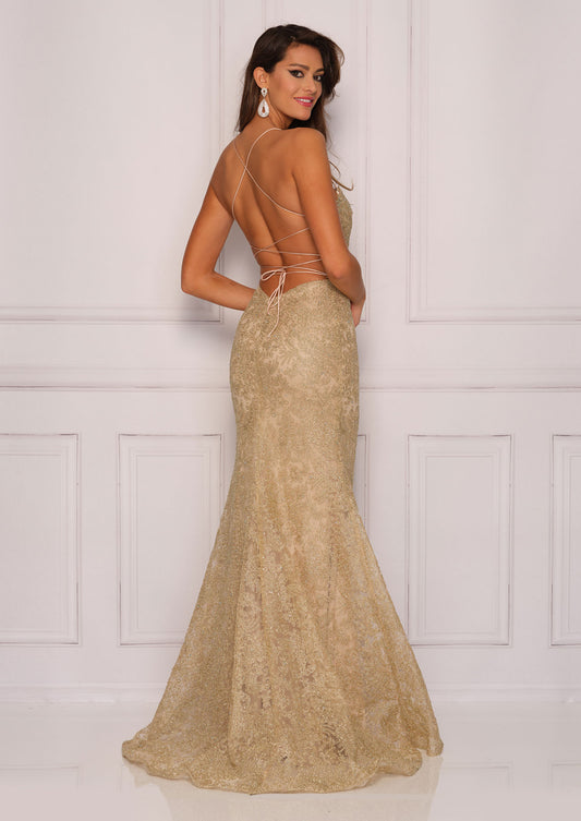 SEQUIN STRAPPY LACE BACK OPEN LEG GOWN