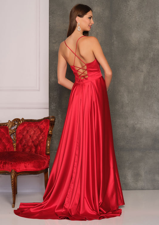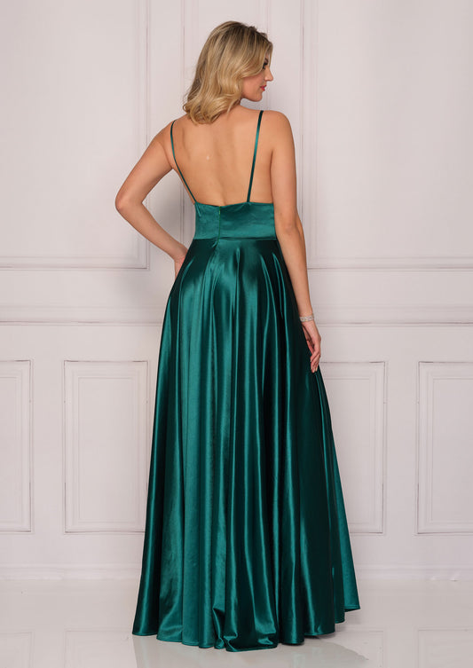 PLEATED SHINY SPEGHETTI STRAP GOWN