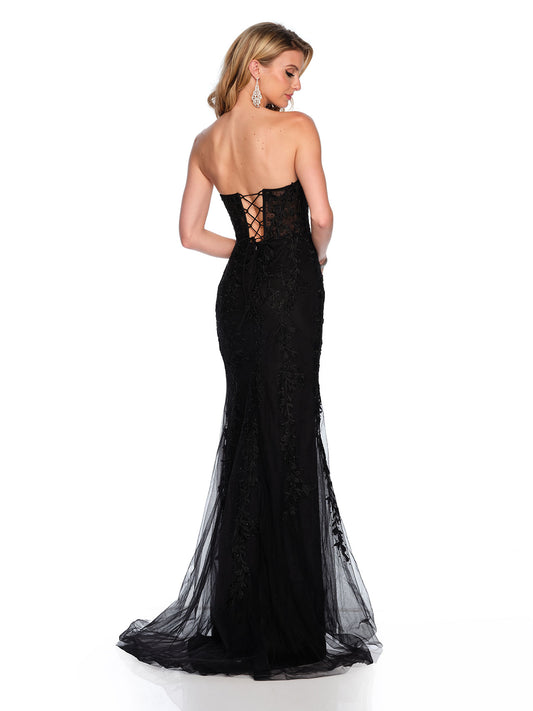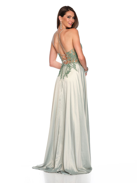 FLOWY SATIN GOWN WITH ILLUSION BODICE