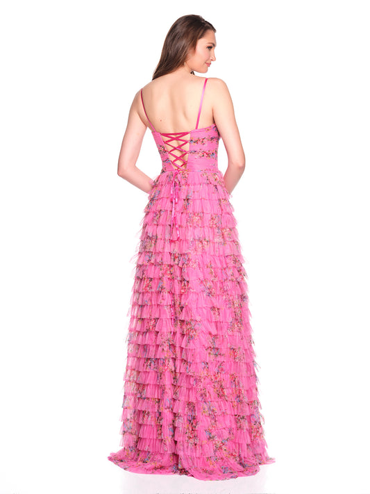 TIERED PRINTED GOWN WITH FRONT SLIT