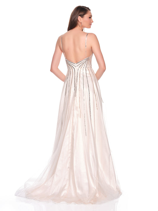 BEADED DRESS WITH ILLUSION BODICE AND BACK LACE UP
