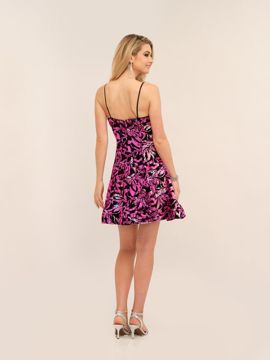 TRANSPARENT SIDE SEQUINED FLORAL MINI DRESS