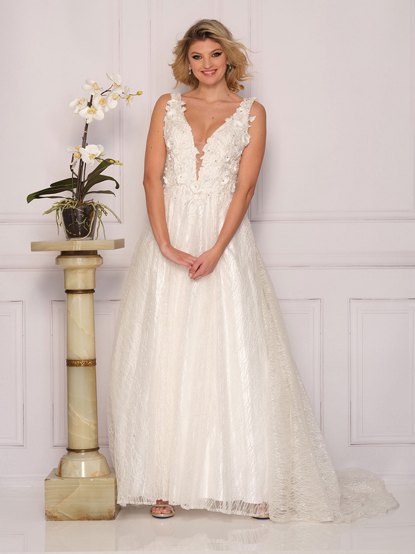 A-LINE WEDDING DRESS WITH 3D LEAF MOTIF PLUS SIZE