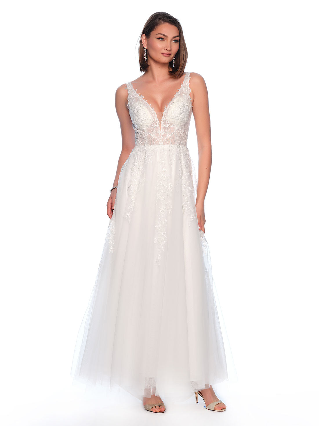 EMBROIDERED LEAF DETAIL ON BODICE WITH FLOWY SKIRT