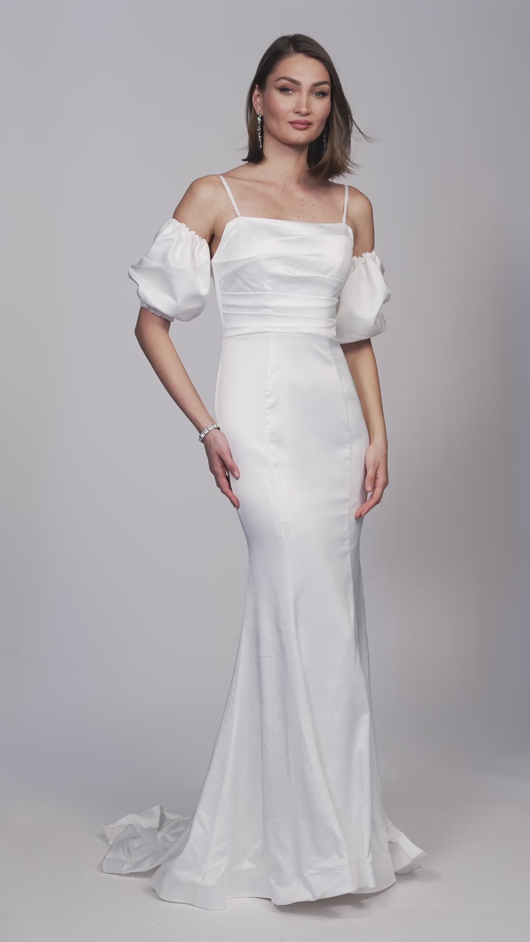 • Square neck bodice with detachable puff sleeves