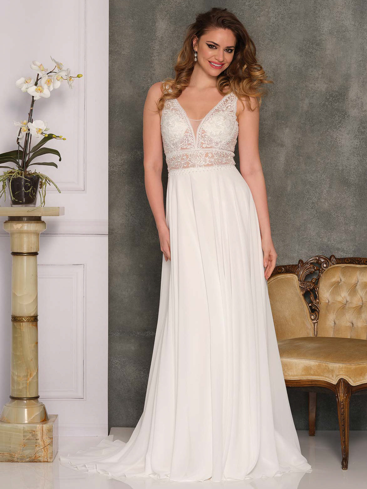 A-LINE LACE AND CHIFFON WEDDING DRESS