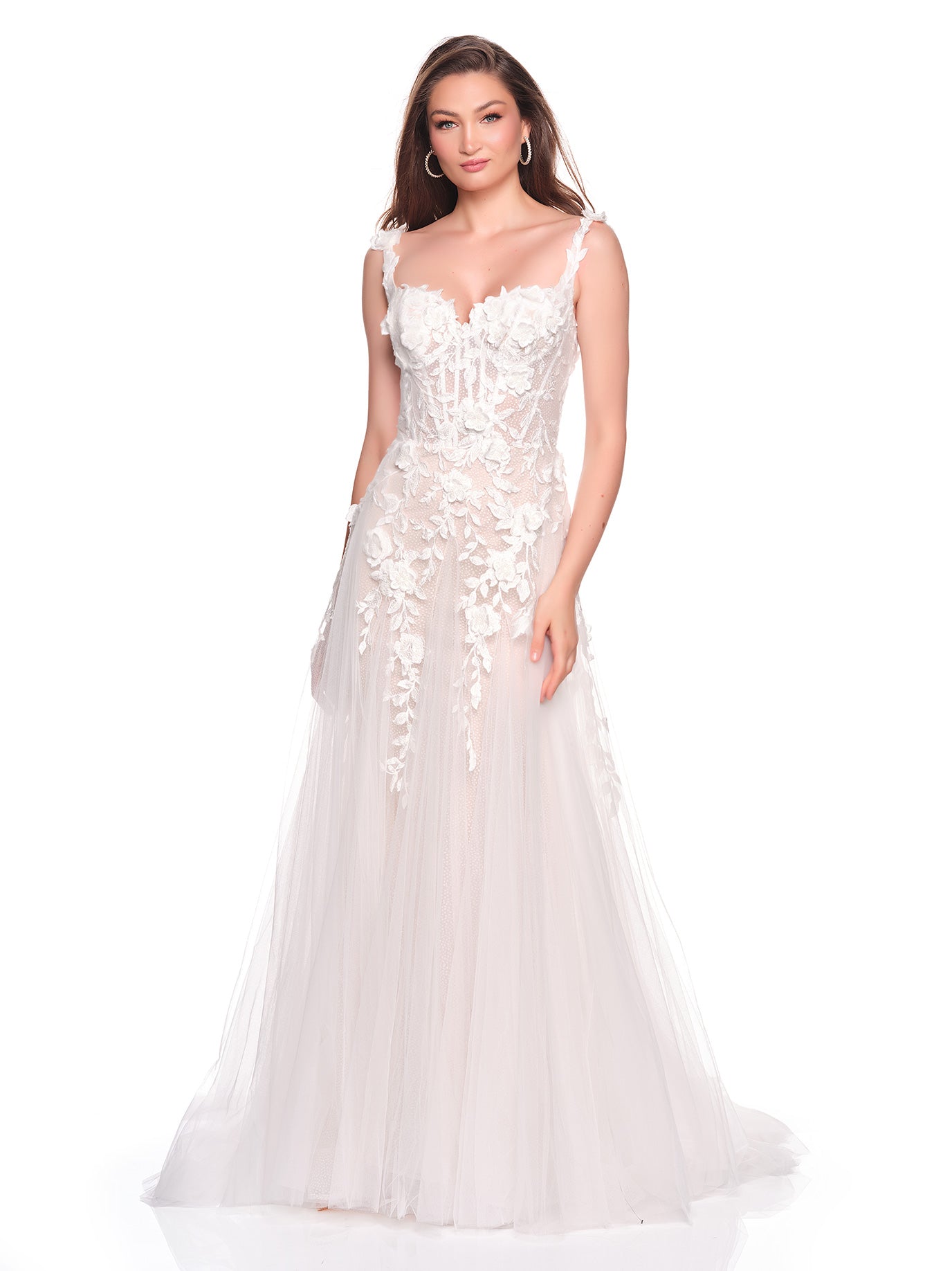 A-LINE BRIDAL GOWN WITH CORSET BODICE AND FLORAL APPLIQUES