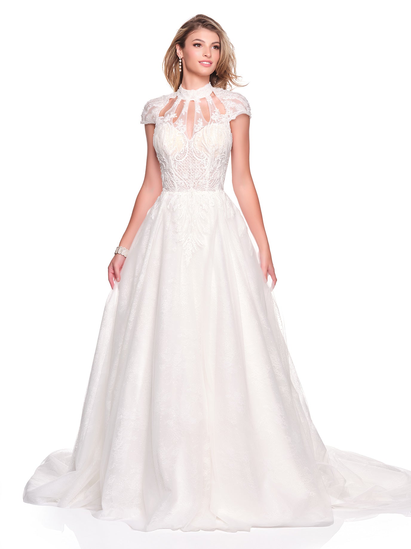 A-LINE BALLGOWN BRIDAL DRESS WITH BEADED HIGH NECK CUT OUT BODICE